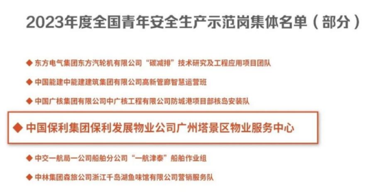 保利物業(yè)獲評(píng)“全國(guó)青年安全生產(chǎn)示范崗”