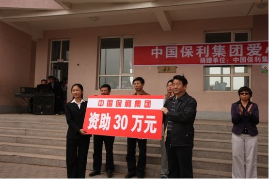 2000年,集團(tuán)公司為響應(yīng)北京市青少年發(fā)展基金會(huì)、內(nèi)蒙古青少年發(fā)展基金會(huì)、希望工程北京捐助中心捐資助學(xué)的號(hào)召,在內(nèi)蒙古捐建了一所希望小學(xué)。集團(tuán)公司全體員工持續(xù)十多年為保利希望小學(xué)捐款捐物,總計(jì)達(dá)147萬(wàn)多元,先后為小學(xué)購(gòu)置了圖書(shū)、電腦、學(xué)生生活用品、校車、教學(xué)設(shè)備等。 2009年10月,由于學(xué)校原址地處煤礦采空區(qū),出現(xiàn)墻體斷裂,危及校舍安全,學(xué)校部分遷至納林陶亥鎮(zhèn)政府所在地,與新廟小學(xué)合并,并繼續(xù)冠名為“保利希望小學(xué)”。今年是第一次為合并后的保利希望小學(xué)捐款。