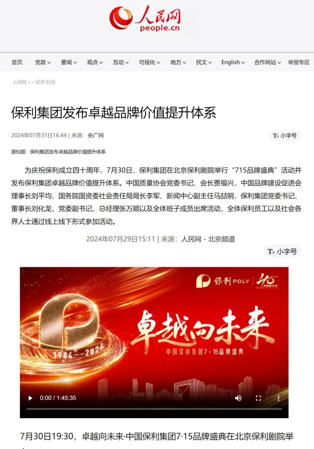 告白流金歲月,共赴美好未來。保利成立四十年之際,保利集團集中開展一系列主題活動,“7·15品牌盛典”以時代交響傳唱保利崢嶸樂章,“卓越四十年”主題宣傳鐫刻卓越保利的時代坐標,各子公司特色策劃匯聚萬千保利人的奮斗群像……全系統(tǒng)以各種形式為保利慶生,以美好接力,獲得社會各界廣泛關注。人民日報、光明日報、經濟日報等權威主流媒體聚焦報道,全網曝光量超過4600萬,詮釋出新征程上保利篤定目標、不懈攀升的新篇章。