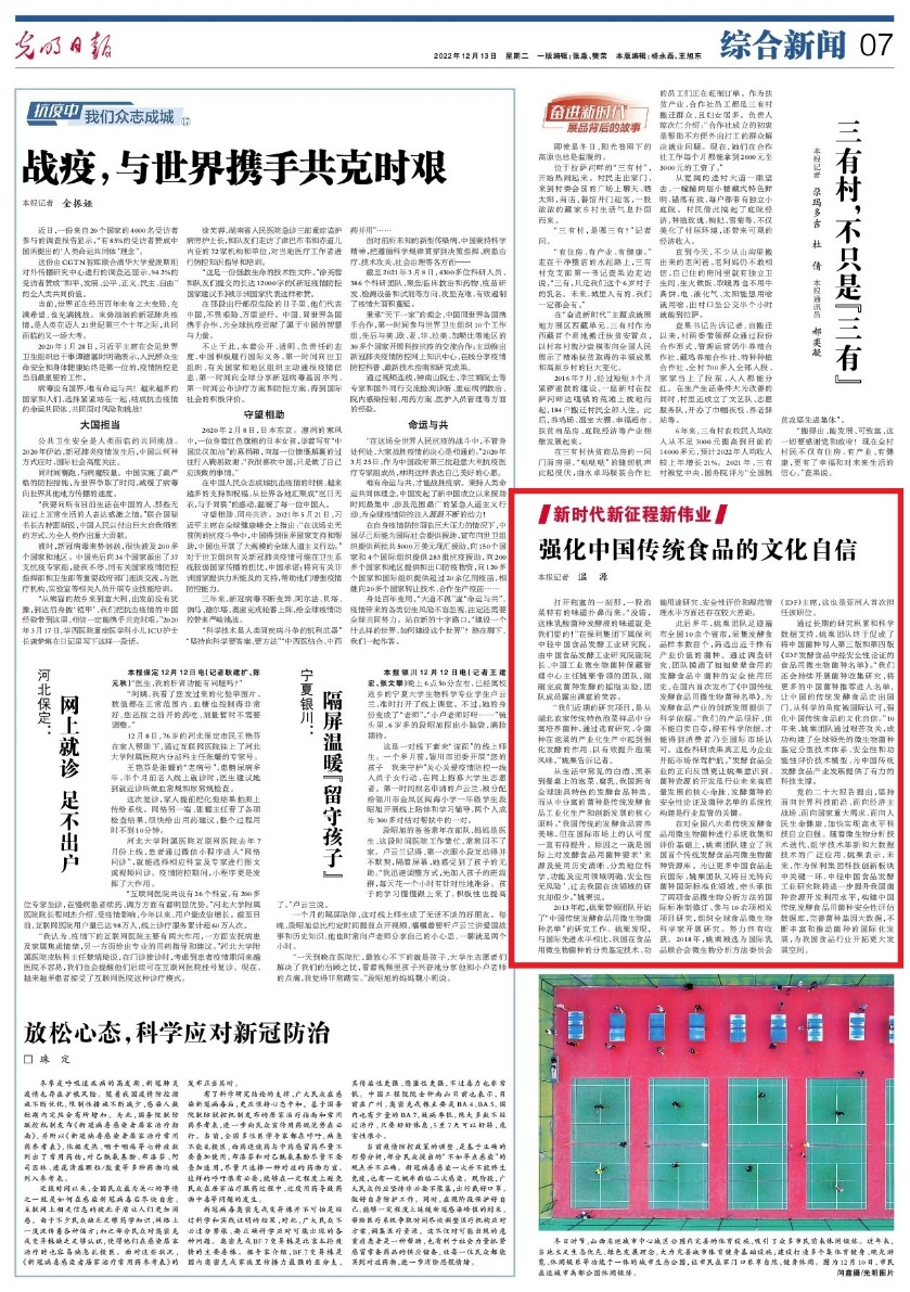 12月13日,《光明日報》“新時代新征程新偉業(yè)”專欄以《強化中國傳統(tǒng)食品的文化自信》為題,聚焦保利中輕下屬中國食品發(fā)酵工業(yè)研究院多年來攻堅中國傳統(tǒng)發(fā)酵食品研究項目,不斷引領(lǐng)中國風味走向世界舞臺的文化自信與科技自強。