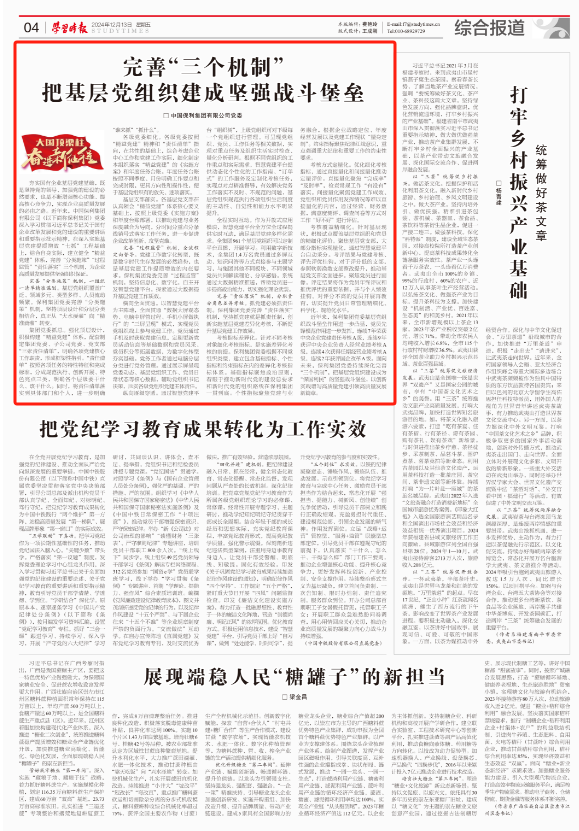 《學(xué)習(xí)時(shí)報(bào)》刊發(fā)集團(tuán)黨委署名文章:完善“三個(gè)機(jī)制”...